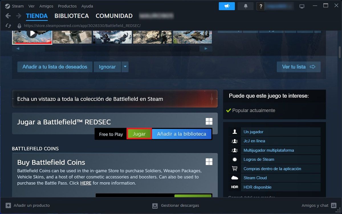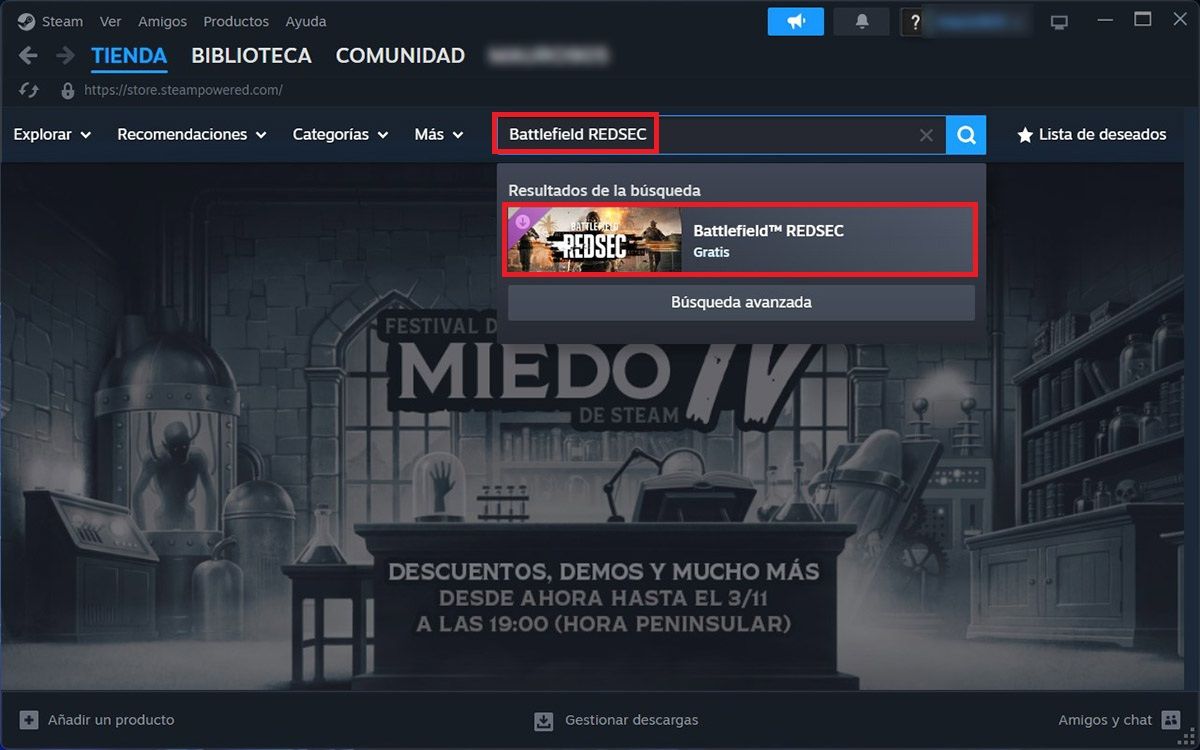 Si nunca has jugado Battlefield, y además no dispones de Battlefield 6 en tu PC, ¡no pasada nada! REDSEC se puede descargar como título independiente gratuito desde Steam siguiendo estos pasos: