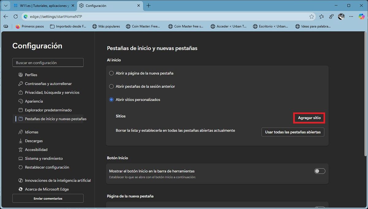 Quizá prefieres que se abra Google, tu correo o una página concreta que usas todos los días. La buena noticia es que cambiar esta configuración en Windows 11 es muy fácil, aunque esté un poco “escondida” entre los ajustes del navegador.